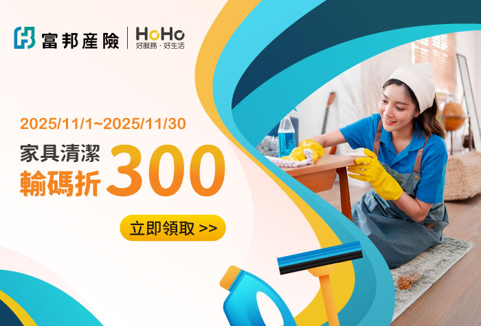 HoHo好服務是全台首選居家服務平台,提供專業居家清潔、冷氣清潔、整理收納等多項服務。富邦產險保好康會員於HoHo好服務官網,預約沙發、床墊、窗簾等家具清潔服務,輸入指定折扣碼現折300元。