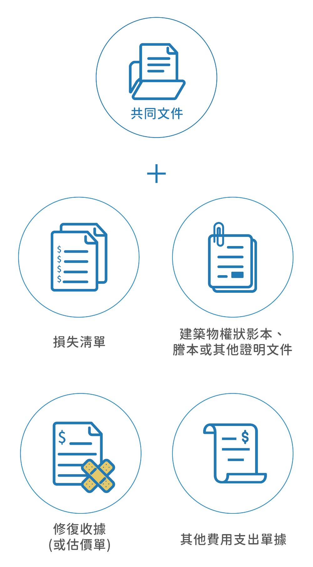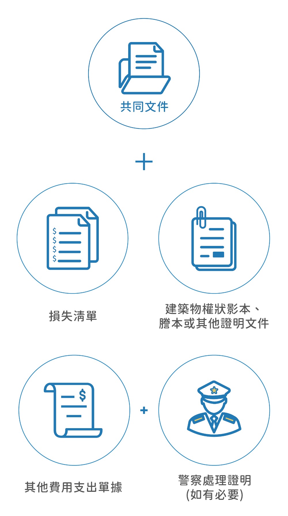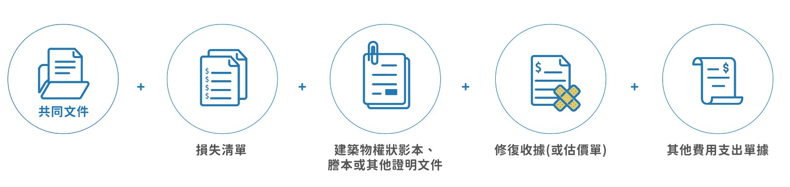 * 共同文件為理賠所需基本文件,不同理賠項目皆需準備